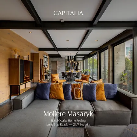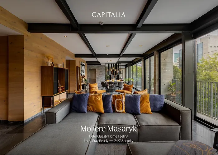 Aparthotel Capitalia Moliere Masaryk à Mexico est situé dans le voisinage de "Masaryk Shopping Strip" à Mexico, à moins de 5 minutes de marche de l'Ambassade de France. Les clients qui séjournent sur cet hotel 4 étoiles peuvent garer leur voiture sur place.